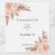 För en elegant och ett modernt bröllop, möhippa- eller bachelorettparti . En vit bakgrund. Dekorerad med ro guld, rosa blommigtar, pampasgräs. Anpassa och lägg till namn och datum.