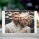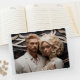 Ett par i contemporary bröllop som är klädda i White Apparel, en vacker gästbok för vänner och familj att njuta av.