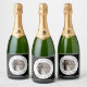 Anpassade mousserande vin-etiketter med foto och två linjer personlig text.