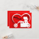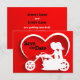 Silhuett Paret Körande på en Motorcykel Save the Date Bröllopsnotis i Rött, Vitt och Svart.