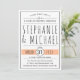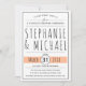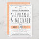 Modern bröllop-pars duschinbjudan med en svart och vit handritad typografi, accentuerad med persikor. Inbjudan markerar personligens text i svart elegant mot en vit bakgrund, där datumet för möhippan visas på en charmerande persikobanderoll. Inbjuds framsida i en sofistikerad svart gräns visar en modern och snyggt vibe. På baksidan tillför en subtil mönster av vitt kor på en persikobaksida en smula sofistikering och charm till den övergripande utformningen.