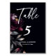 Bröllop personlig bordsprogram mörk moody peonier bordsnummer