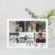 Säg tack till gästerna i bröllop med en fotokollage där du kan ha fem av dina vackra bröllop-foton. Lägg till datum för namn och bröllop i ett modernt svart teckensnitt. Tack för att du skriver i ett charmerande kalligrafiskript. På baksidan kan du för hand skriva ett personligt tack till dig på bakgrunden.