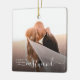 Ditt favoritfoto från bröllop blir en vacker påminnelse om din första jul som gift par. Designad i ett modernt och elegant stil med mjuka skriptbokstäver och neutralt, tillför den här keepsakin en förfinad beröring till din helgdag dekor. Ett tidlöst biet för att trimma träd, klinga eller fira säsongen på ett sätt som känns personligt och meningsfullt. Byt ut det här exempelfotot mot ditt favoritfoto från bröllop.