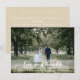 Ett vackert fotografkort tack vare ett enkelt, modernt, minimalistiskt citattecken "Tack och Kärlek" på en halvgenomskinlig övertäckningsbakgrund. Det här mångsidiga kortet kan vara personlig med ditt eget foto, namn och datum för att göra ett verkligt unikt och skräddarsytt kort för din älskade. Bakgrundsmeddelandet "Dearest Friends & Family, Tack för att du stöder oss och delar med dig av vår lycklig-dag! Vi tackar er uppriktigt för att ni är en del av vår bröllop firande och för den fantastiska gåva ni har gett oss. Er omtänksamhet och generositet uppskattas verkligen när vi börjar vårt nya liv tillsammans, som herr & fru ()!" kan lätt uppdateras med ert eget speciella budskap. Kortet visar ett exempel på ett par på deras bröllopsdag, frun är blondindig och bär en snöre boho bröllop klänning och brudgummen bär en vass rik blå kostym. De går i ett ängsgräs inhägnat av rader av mogen träd. Scenen är vild och romantik. Bilder är designat som platshållare som ska ersättas av ditt favoritfoto eller din familj bild. En del av vår slående fotosamling, med en rad utseende och stilar, var snäll och titta!