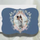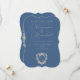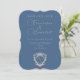 En tidsålder för snabb vintage med temat bröllop design. Med elegant ramade vapensköldar som överger initialer Mjuka blått med blått lila och nyp i en pastellnyans som avspeglar nödtiderna höjer Vintagen Spara datum och elegant personligt bröllp. Ändra enkelt informationen till ditt eget anpassad design. Ändra ställe-hållarbilden med ett eget foto. Elegantens formella bröllop-design.