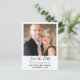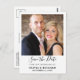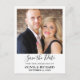 Spara datum meddelande-vykort med eget foto på omslaget och bröllop-relaterade detaljer på baksidan av vykortet.