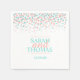 Modern grafisk utspridd prick konetti bröllop-middag eller pappra blöjor för bröllopsfest. Ett underbart personligt tillägg till borden bröllop i rosa av korallalsyra, grönt blå och vit tealaqua-orange. Anpassa med din egen namn och bröllop-dejt. Sarah Trett originaldesign och grafik för www.mylittleedenweddings.com