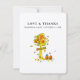 Rustik design med unika brider- och groompumpor i hand plockade bredvid ett träd höst färger med Kärlek och tack på toppen. Baksidan har ett personlig-meddelande. Bakgrunden till färg är en lätt grädda färg och är anpassade med typsnitt.