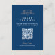 Bröllop QR krona kärlek,, monogramblått Tilläggskort