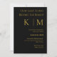 Förbered dig för din stora dag med sofistikering och stil. "Vår sista applåd före Ringar"-inbjudan fångar kärnan i din kärlek-artikel i en Black and Guld-design. Den här inbjudan lyser ur lyxen och anger perfektens tonläge för din repetitionsmiddag, en förebåd för storslaget firande. Uppmana till förutseende och elegans med vår "Last Fling before the Ringar" Bröllop Rehearsal-inbjudan - perfekten föregår med glädje er alla efteråt.