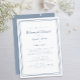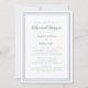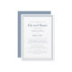 En enkel och chic dammig, blå och vit bröllop-repetitionsmiddagsinbjudan har en enkel contemporary minimalistisk utformning med en dammig blå dubbla ram gräns på en skarp vit bakgrund. Anpassa bröllop-designen med dina detaljer i trendigets text och skript i blått. Baksidan matchar i helblått. För bästa resultat ersätter du mallinformationen med egna detaljer som lämnar mellanrum mellan stycken som i exemplet och använda allt nedre brev i fodral där det anges. E-post invitationsuites@gmail.com med frågor eller anpassningsbar.