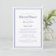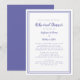 En enkel och chic runt veckans blått och vitt bröllop-repetitionsmiddagsinbjudan har en enkel minimalistisk contemporary med en blå dubbla ram gräns i blått på en skarp vit bakgrund. Anpassa bröllop-designen med dina detaljer i trendigets text och skript i blått. Baksidan matchar i helblått. För bästa resultat ersätter du mallinformationen med egna detaljer som lämnar mellanrum mellan stycken som i exemplet och använda allt nedre brev i fodral där det anges. E-post invitationsuites@gmail.com med frågor eller anpassningsbar.