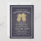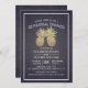 Mall för inbjudan till bröllop-middagsinbjudan - Elegant Faux guldfoil Pineapple par på marinblått Blommigt, bakgrunden för skadeindelning. En Perfekt för din stora dag. Alla textstorlekar i stil, färg, kan ändras för att passa dina behov!