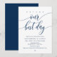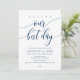Vackert, vackert, minimalistiskt, marint, blått skript, Bröllop Rehearsal Dinner-kort (före vår bästa dag). Det här är perfekten för er bröllop kväll-repetition, middag och party firande. Lägg till information i matchande teckensnitt/text. #TeeshaDerrick