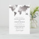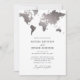 Metallic silver ger världskaraktär för inbjudan till bröllop. Med en vacker klassisk världskarta över silver. Perfekt för utlandsort bröllop eller resande älskare.