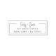 Returadressen Modern och Elegant Cursive Script Typography bröllopsinbjudning med frimärke som är underbar för Spara datum, OSA, Möhippa, babykläder, Födelsedagsfest, husuppvärmning, hemuppvärmning eller julkort eller Helgdag. Texten i den här handskrivna moderna manustypografietiketten kan uppdateras och anpassas med ditt namn och adress. Dessa babyskor, Möhippa, Bachelorette Party by Mail, Bröllop eller Delay the Date Returadress Lables är perfekt för den händelsen eller party som måste flyttat till ett nytt datum.