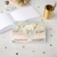 Bröllop-band i ett årstidsskal med blommor och nät i abstraktens hjärta ram på rosa och gröntens vattenfärgbakgrund. Text kan redigeras.