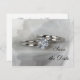 Meddela dina kommande påhopp med elegant bröllop Ringar på Grått Spara datum meddelande. Den här klassade anpassningsbar giftermål-behållan innehåller datumannonskortet ett digitalt utökat, nära foto av ett diamantband av förlovning ring och bröllop med en mjuk grått-bakgrund.