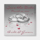 Spara datum magneter, med silver bröllop ringar och röda hjärtan. Ange informationen i vår mall för enkel använda.