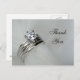 Lägg till er personliga tacksamhet och uppskattning till vykortet elegant bröllop Ringar Tack. Lämplig för använda av gåvor som tas emot efter förlovningsfest, möhippa eller giftermål. Denna klass personligt bröllp tackkort har ett foto av ett diamantband av förlovningen ring och bröllop med en vit tylbakgrund.