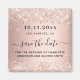 En modern och elegant Spara datum magneter för ett bröllop. En faux-metallisk ro-faux tittar bakgrundsdekorerad med faux-glitter damm. Anpassa och lägg till ett datum och namn. Texten: Spara datumet skrivs med ett stort trendig-handskript i stil.