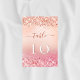 En övertoningsbakgrund i ro guld och rosa, dekorerad med konfekti. Anpassa och dina bordsnummer. Matchningsmenyn finns i vår butik!