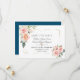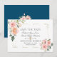 Elegant kortdesign med vattenfärg rosa rodnad kräm blommor och gröna blad, en falsk guld glitter trasig ram, blommig avdelare, på vit bakgrund. På baksidan samma blommor buketter på oceanblå bakgrund. Använd Anpassa verktyg för att lägga till din info, ändra typsnitt, typsnittsfärger. För matchande artiklar, besök min Vattenfärg Blommor Guld Ram Samling.