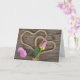 Pluft av rephjärtan med rosa rosenknopp och lösliga petaler på rostfritt barrträ för nya lykta grattisar.