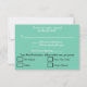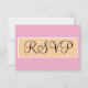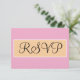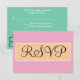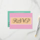 Bröllops-RSVP är skrivet i elegant svart skrivstil inuti en geometrisk sandfärgad beige och vit rektangel. Ensolid pastellrosa bakgrund. Personifiera baksidan med dina speciella tillfällesdetaljer i vit och svart typografi mot seafoam grönblå bakgrund. Originaldesign av TamiraZDesigns.