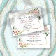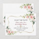 Elegant kortdesign med vattenfärg rosa blush blommor och gröna blad, en falsk guldram, blomsterdividerare, på en vit bakgrund. På baksidan blush blommor bouquet. Använd Anpassa verktyg för att lägga till din information, ändra typsnitt, typsnittsfärger. För matchande artiklar, besök min Blush Cream Blommor Kollektion.