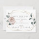 Bröllop spara datum | Boho chic dusty ro rosa rosor omger ett geometriskt terrarium stil guld ram med sage grey. Reverse är en komplementär dammig rosa. Anpassa text, teckensnitt stil, färg och storlekt. Originalteckningar skapat för BarefootBride™ av © WhimsicalArtwork™ - Detta ingår i en komplett Bröllop Stationery Suite med matchande bröllop, babydusch och andra händelsematerial.