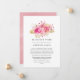 Ett fint bröllopskort med rosa rosor och guld glitter och tropiskt lövverk för att meddela en minskad gästlista. Under osäkra tider kan man tvingas hålla ett mindre bröllop. Detta kort tar bort det pinsamma! Dessutom kan man ge gäster möjlighet att delta i en virtuell vigsel.