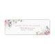 Denna etikett för returadress för bröllop med rosenskär blommig dekoration har eleganta akvarellblommor i mjuk rosafärg, kompletterade med delikat grönska för en fräsch vår- eller sommarlook. Det moderna kalligrafiska skriften lägger till en sofistikerad touch, vilket gör det till den perfekta slutliga detaljen för era bröllopsinbjudningar.