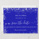 En modern och elegant Spara datum för ett bröllop. En bakgrund i royalet som dekoreras med faux silver glitter damm. Anpassa och lägg till ett datum och namn. Texten: Spara datumet skrivs med ett stort trendig-handskript i stil.