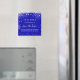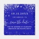 En modern och elegant Spara datum magneter för ett bröllop. Royalets blå bakgrund dekorerad med faux silver glitter damm. Anpassa och lägg till ett datum och namn. Texten: Spara datumet skrivs med ett stort trendig-handskript i stil.