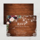 Rustic Bröllop Wood String Burk Ljus Snöre Watercolor Burgundy Marsala Blue Blommigt OSA kort med val av måltid