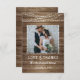 Bilden från bröllop är accentuerad med en bakgrund av rustik, land, brun, avvanda träplank och vit ljus tillsammans med titeln KÄRLEK & THANKS och ditt datum i bröllop i ett westernt, handtryckt vitt typsnitt från land och ditt namn i ett vitt typsnitt med en kraftig pensel. Med baksidan kan du skriva ditt personliga tack-du-meddelande eller ta bort exempeltexten och trägrafiken för att lämna baksidan en tom, vit handskrift med dina uppskattningsanteckningar. PHOTO TIP: För snabbaste/bästa resultat väljer du ett foto med subjekt i mitten och/eller före skörd till en kvadratisk form FÖRE uppladdning och fyller fotot perfekt. Kontakta designern om du vill att designen ska ändras eller om du vill samordna objekt.