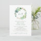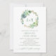 Rustic Watercolor Succulent Wandeans: trendigets bröllopsinbjudan innehåller en rustik vattenfärg, kulent buquet med vita blommor och dammig blå och grönt löv. Den här bröllopsinbjudan kommer säkert att imponera på alla dina gäster, parad med ett handskrivet stil-skript och ett rustiskt serif-typsnitt för initialer och namn! Baksidan har en mindre skarp krans med plats för webbplatsinformationen för bröllop. Du kan ta bort det här meddelandet eller lägga till det om du vill.