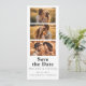 Denna moderna, minimalistiska boho-bröllopsräddningsdatakort har Retro Photo Booth-stiliga bilder och layout. Den leker med enkelheten i en svart-vit typografidesign och lägger till en unik twist. Utrymme för en QR-kod ingår. Det är det perfekta valet för par som uppskattar ren och modern elegans i en rolig och lekfull design. För eventuella speciella designbehov, kontakta designern direkt via e-post choosehappystudio@yahoo.com