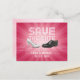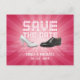 Lägg märke till toppen med den här glamorskriften "Spara datum" på rosa i Fuchsia, med brid och groom bröllop skor på en dans golv och ledad visning med glödande text. Anpassa den med din egen text på båda sidor eller anpassa den ytterligare om du vill justera layouten. Utformning tillgänglig även för inbjudningar med matchande kuvert: