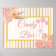 Bröllop-skylt för godisbuffé, rosa och vit stripe, vintage fåglar och blommor.