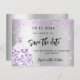 Bröllop silver lila-klänning spara datum meddelande vykort