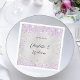 En faux silver tittar bakgrund som dekoreras med lila faux glitter, gnistor. Anpassa och namn och bröllop.