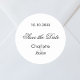 Spara datumetiketten för bröllop. En vit snyggt, svart text. Anpassa och lägg till datum för namn och bröllop.