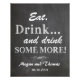 En roligt som avslutar beröring till din bröllopsmottagning. Det här vackra utskrivbara tecknet med en faux chalkboard-bakgrund lyder helt enkelt: "Ät, drick och drick lite mer!" Anpassa den med namn och händelsemedatum!!!