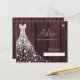 Vita, blanka diamanter med bröllop-klänning på en mörk, burgundös lingbakgrund skapar ett enkelt modernt kort för möhippa av elegant.