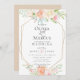 WEDDING-INBJUDANDE | Blommor av söt vårtid i skalade korall, gult, elfenben och rosa med ömtålig grönsak överst och grund. Information i ett guld-geometriskt ram med flera sidor. Reverse är ett kompletterande samordnat färg. Anpassa text, teckensnitt stil, färg och storlekt. Vi skapat att den här mallen är till för att göra det enkelt för dig att anpassa dig till din egen information. Det här är en del av en komplett Bröllop Stationery Suite med matchande bröllop, babydusch och andra händelsematerial designade av ©WhimsicalArtwork™.