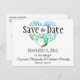 Skicka meddelandet "Spara datum" för ditt bröllop-datum med akva och blått träd i form av ett hjärta och en malltext. Anpassa text fram och tillbaka i mallen fält eller klicka på Anpassa för att välja ett teckensnitt stil, storlekt och färg som du vill använda.