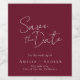 Detta moderna, minimalistiska bröllop Spara datumet har en elegant script framtill. Det spelar med enkelheten i en burgunderröd och vit typografidesign. Det är det perfekta valet för par som uppskattar ren och modern elegans. För eventuella speciella designbehov, kontakta designern direkt via e-post choosehappystudio@yahoo.com